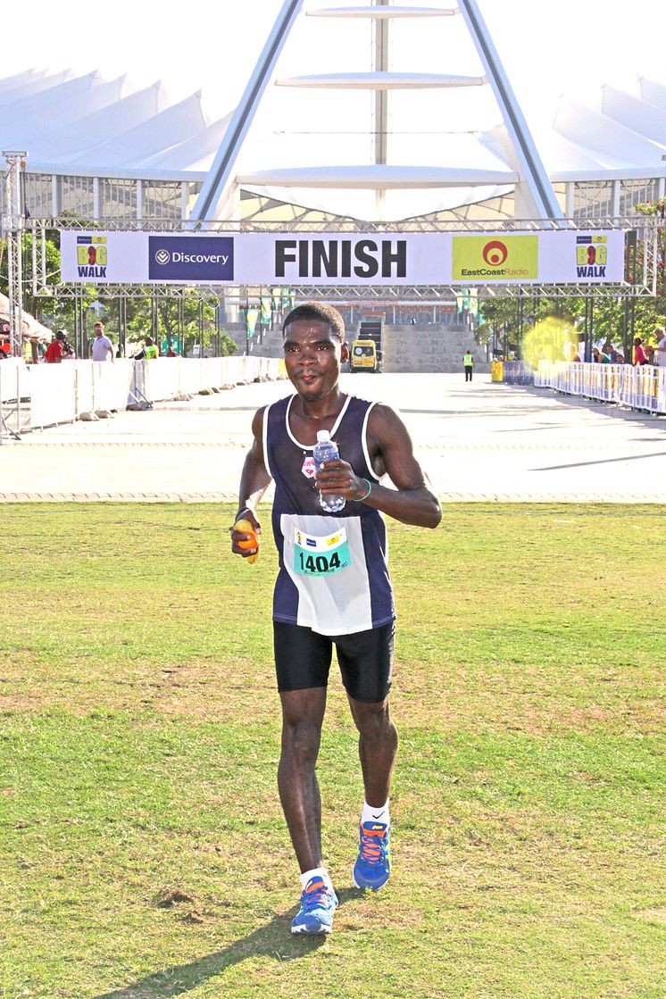 Discovery East Coast Radio Big Walk participant crosses the finish line