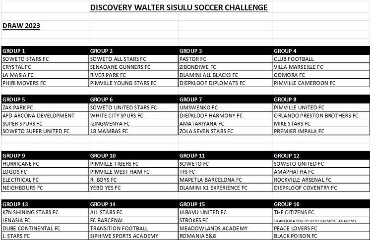- The 20th edition of the Discovery Walter Sisulu Soccer Challenge will take place from 1-23 December 2023.